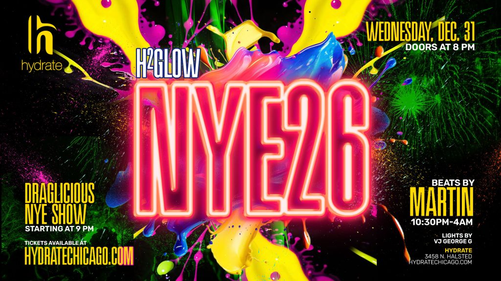Step into 2026 drenched in neon energy. Hydrate transforms into a black-light wonderland for H2GLOW: New Year’s Eve, where every color pops, every body glows, and every beat hits harder. Kick off the night with our dazzling DRAGLICIOUS NYE show at 9:30 PM, then dance straight into the new year with DJ Martin taking you from countdown to close. Get ready to GLOW.